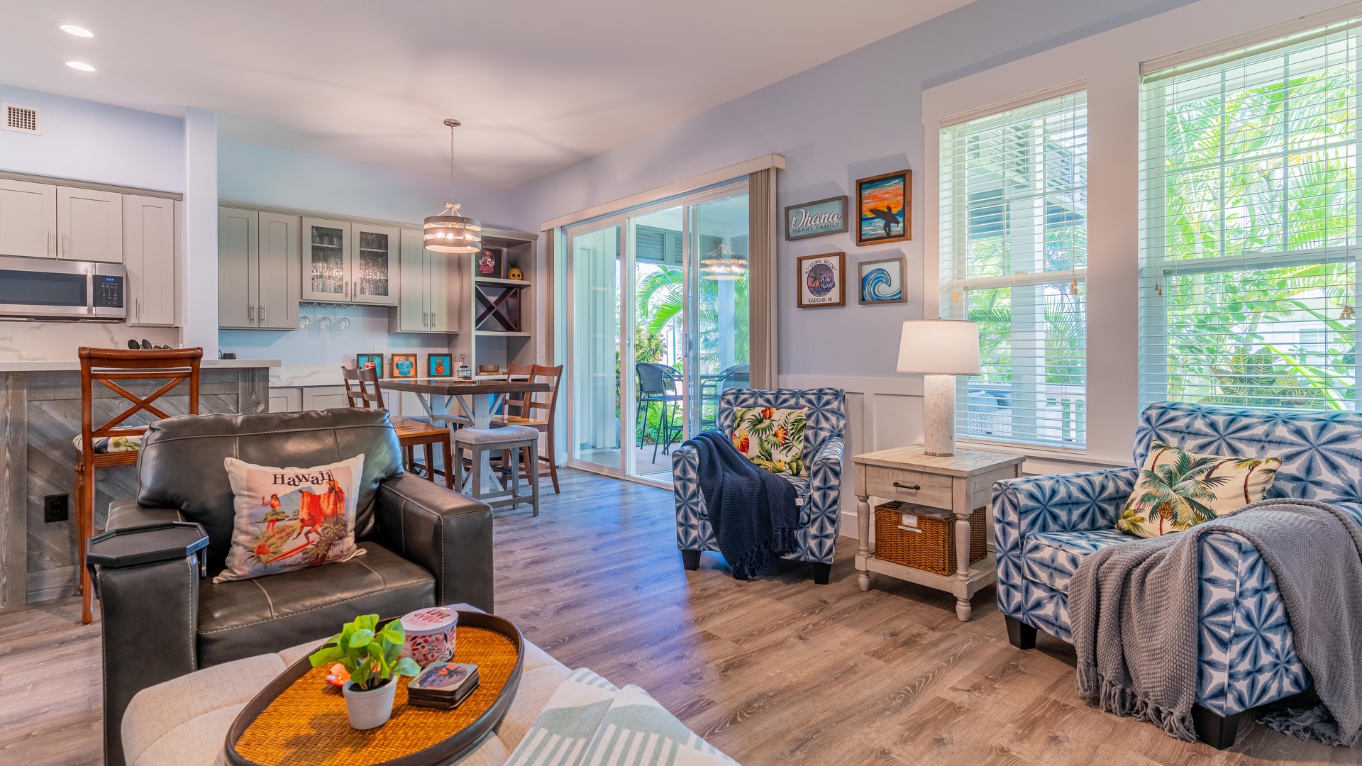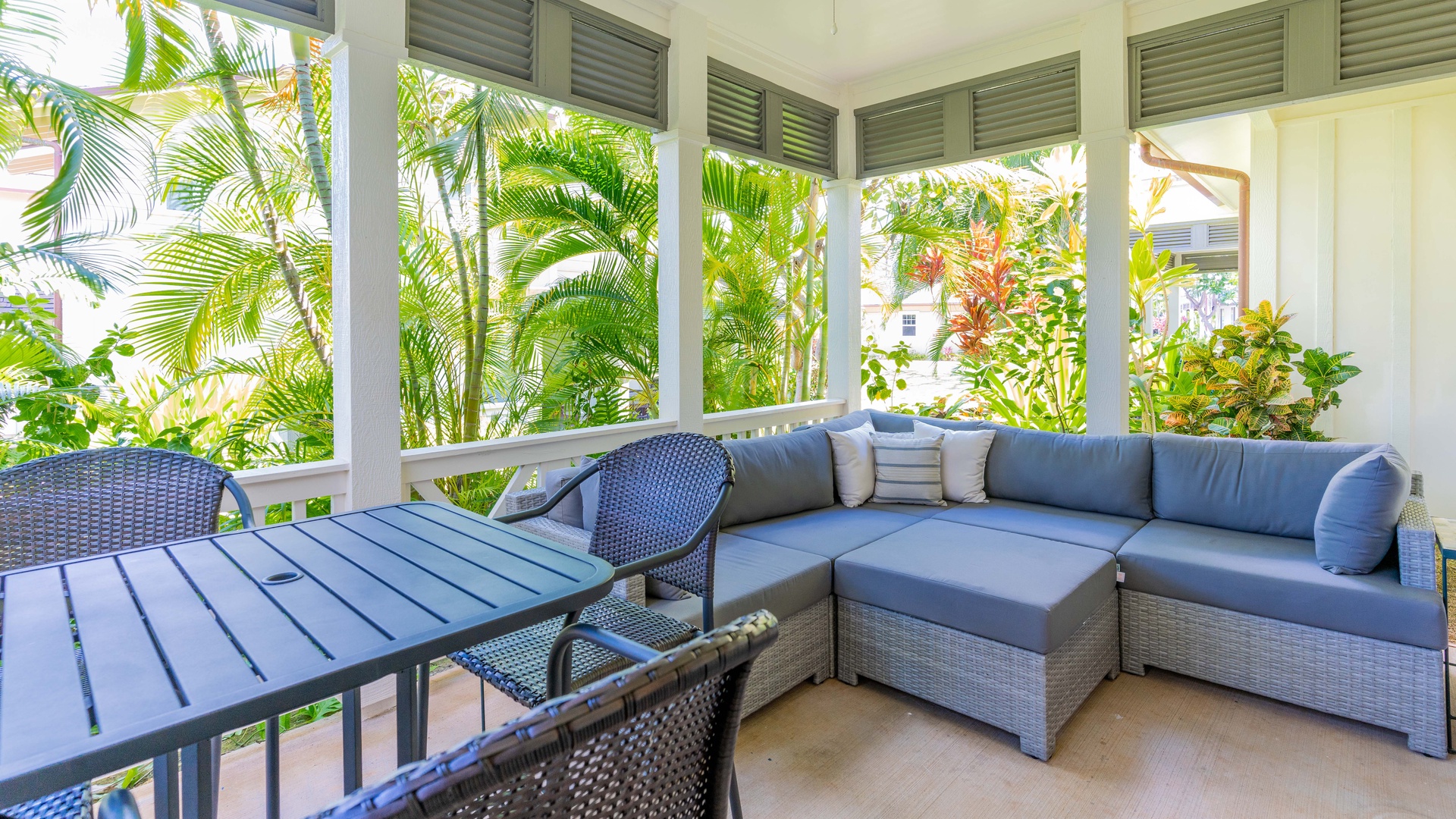 Your private, ground-level lanai feels like a secret garden nook. Enjoy a leisurely breakfast among swaying palms, then return in the evening to sip something cold while the sky turns pastel.
