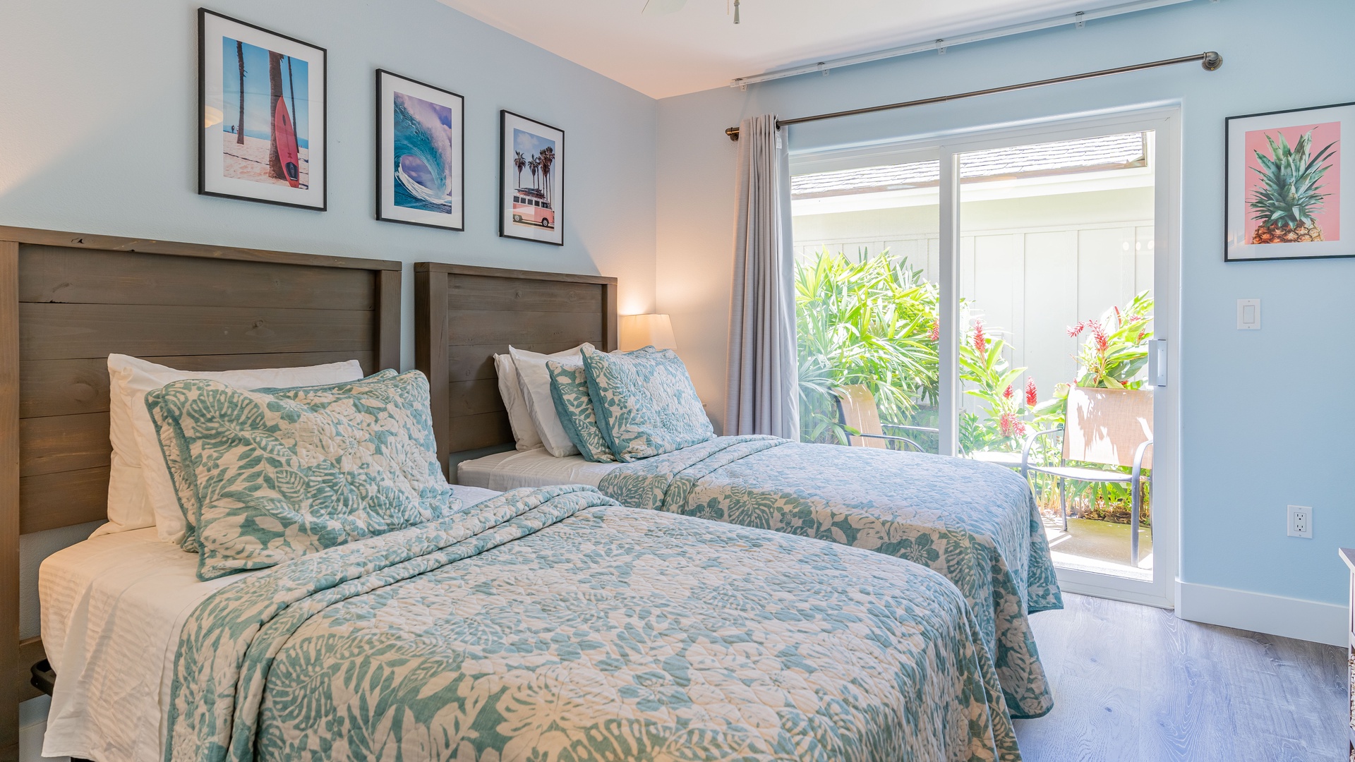 * Guest Suite – Two twin beds (configurable to one king), private lanai corner, adjacent full bath