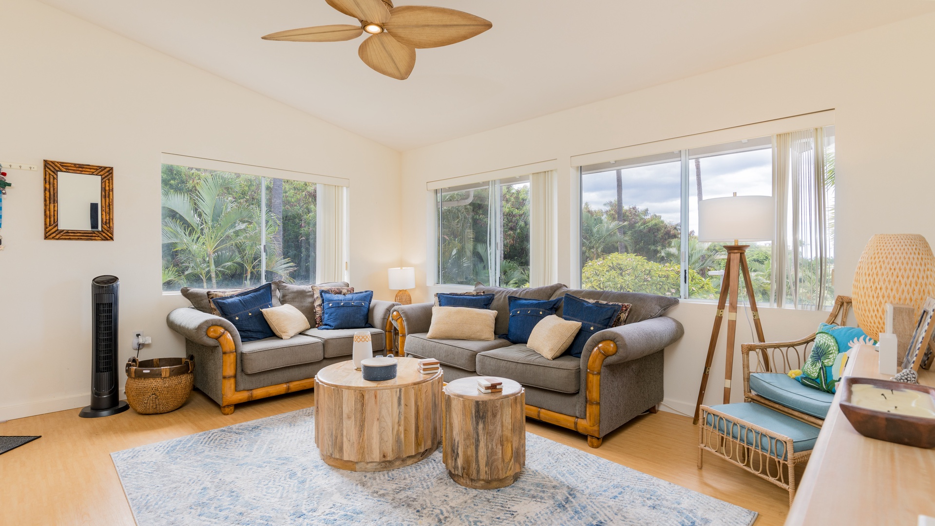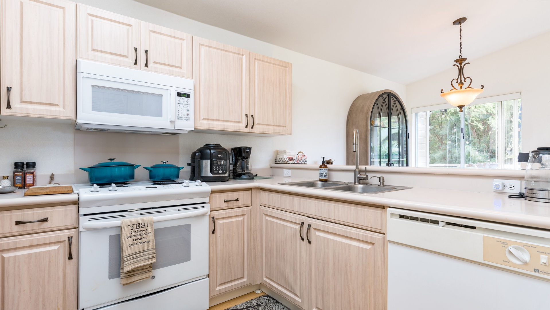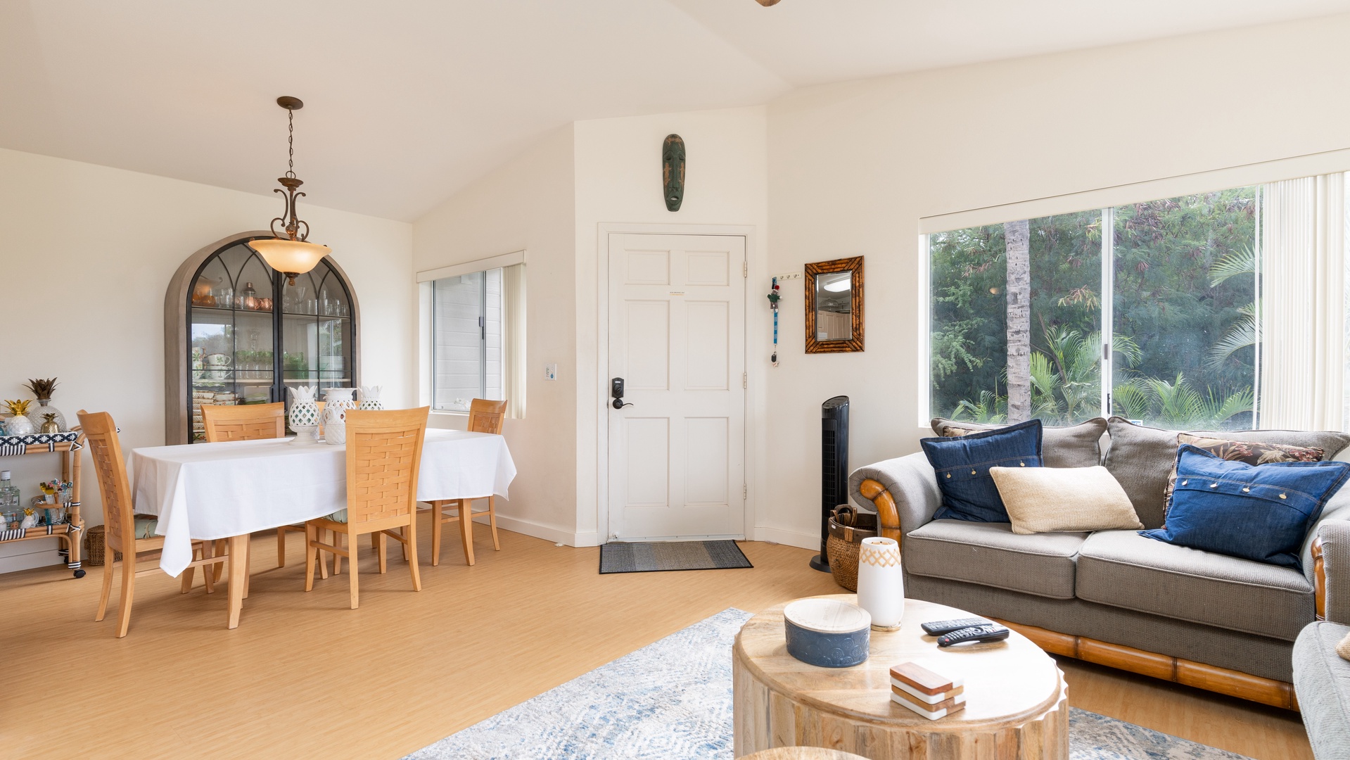 Stocked with modern appliances, this fully equipped kitchen makes home cooking effortless. You’ll find a refrigerator, oven, microwave, rice cooker, and blender, plus plenty of counter space for prepping island-inspired dishes. A breakfast bar doubles as a casual spot to sip morning coffee.