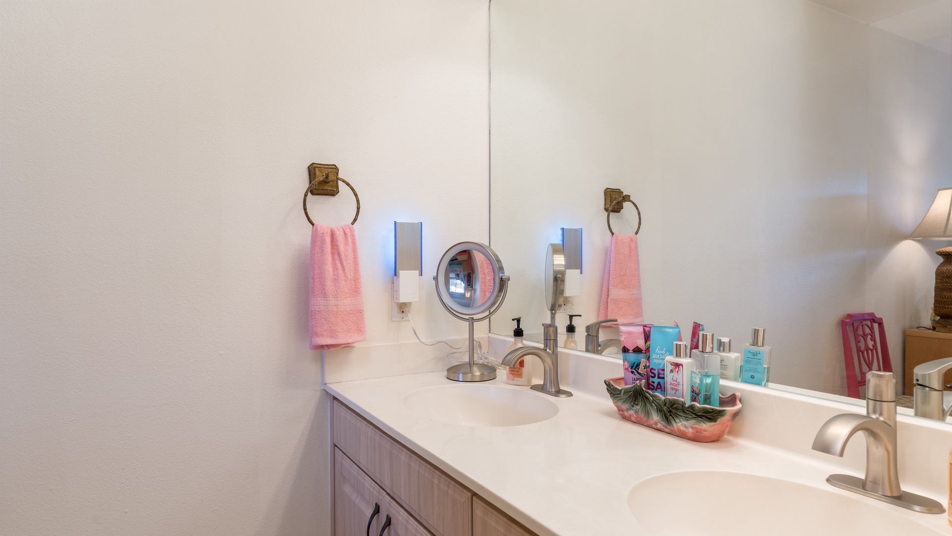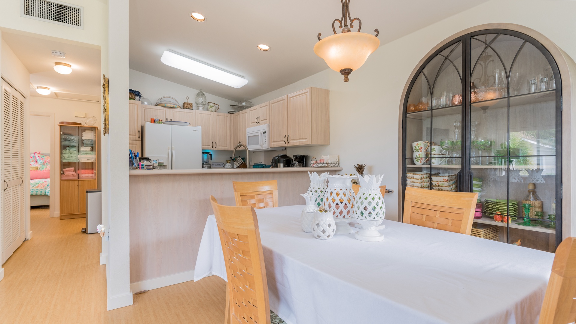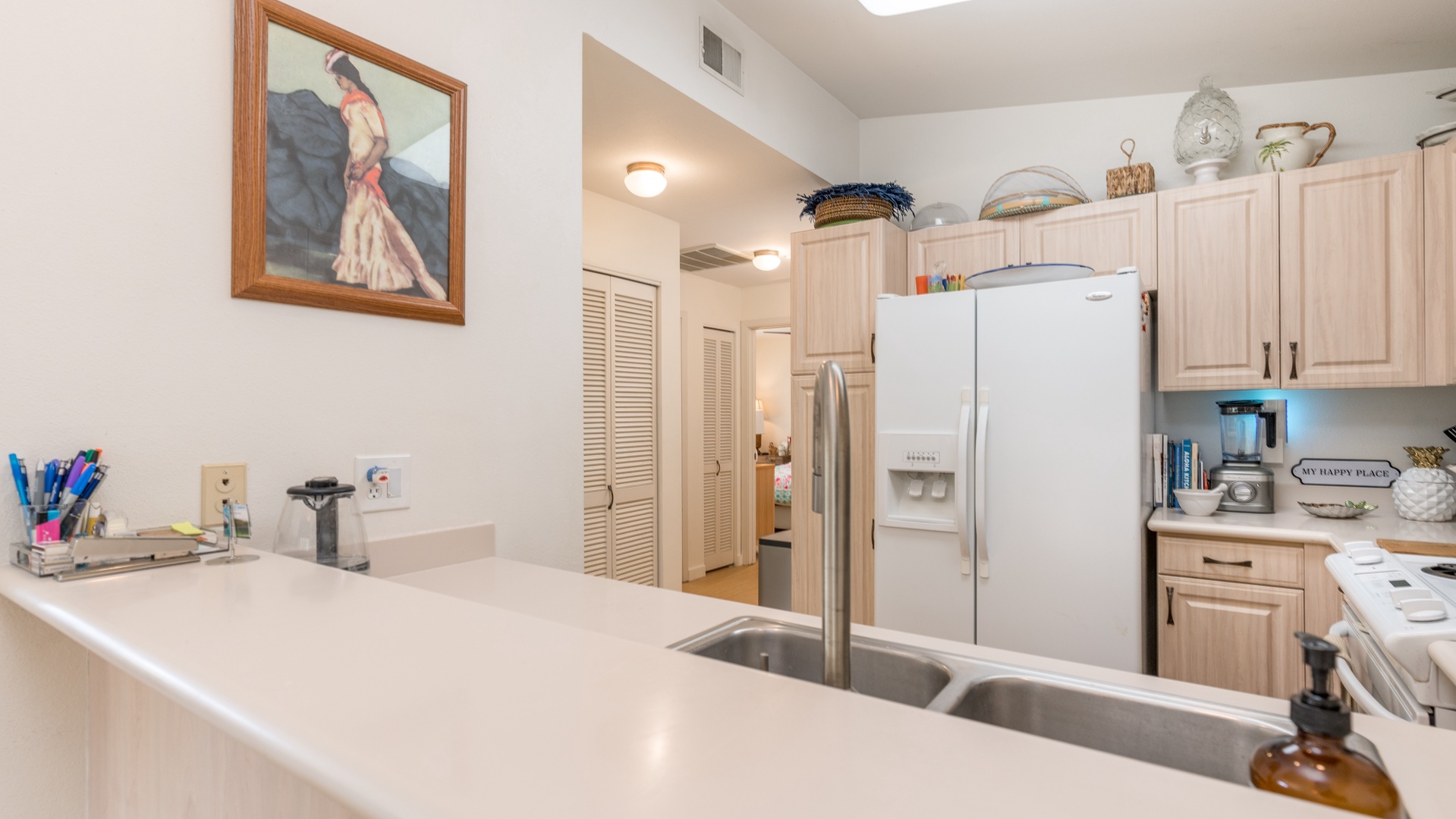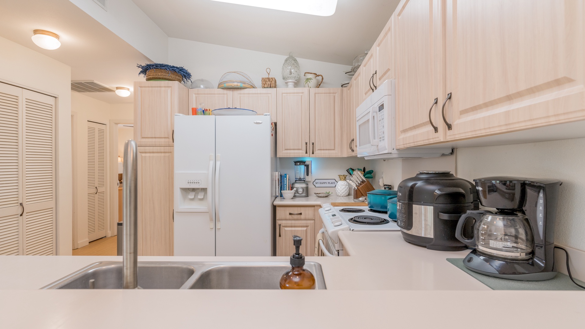 Stocked with modern appliances, this fully equipped kitchen makes home cooking effortless. You’ll find a refrigerator, oven, microwave, rice cooker, and blender, plus plenty of counter space for prepping island-inspired dishes. A breakfast bar doubles as a casual spot to sip morning coffee.