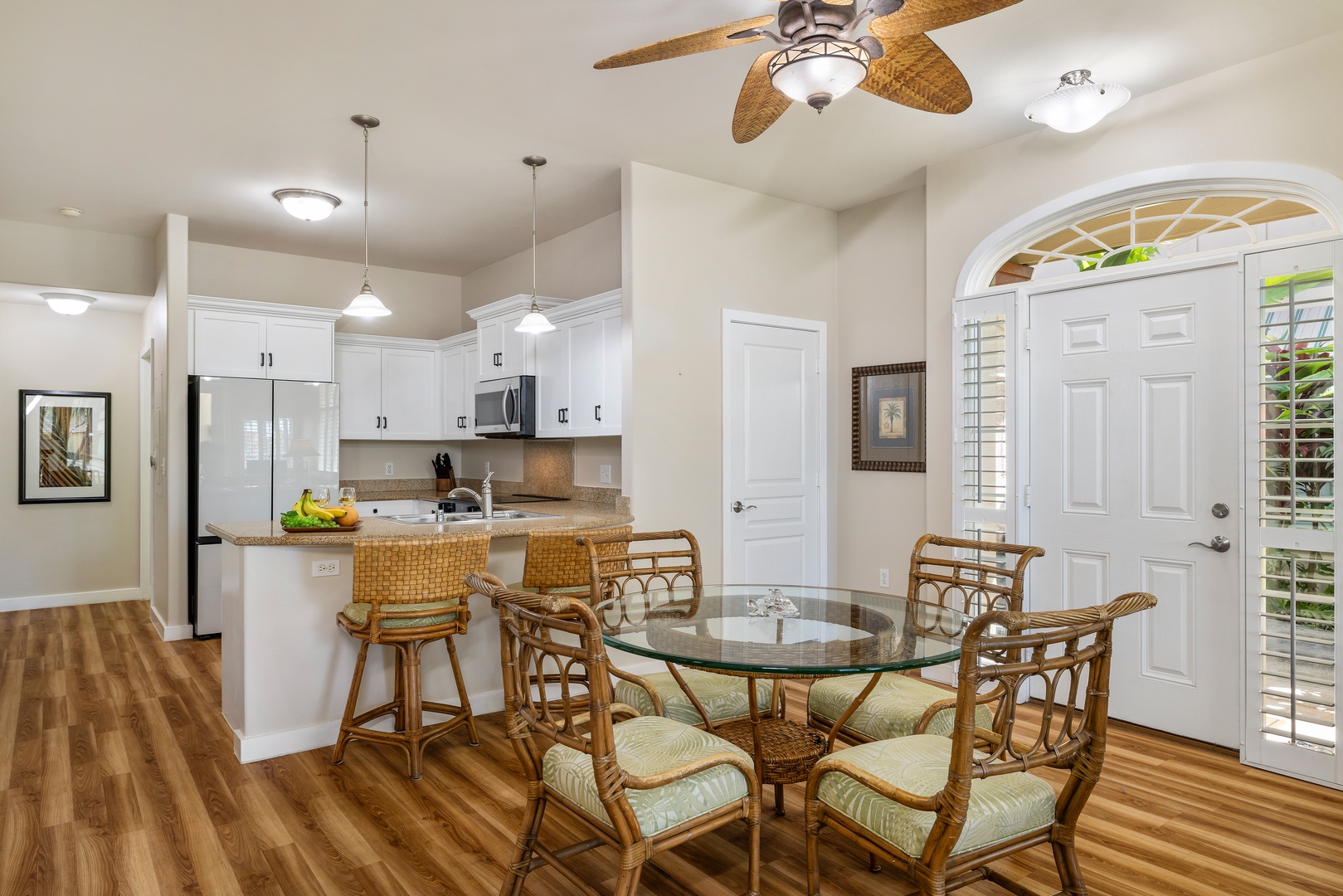 The private lanai provides a peaceful outdoor retreat, surrounded by vibrant tropical landscaping and ocean view. It’s the ideal place to unwind, sip a drink, or simply soak in the lush ambiance of this serene community. Guests also enjoy access to resort-style amenities, including a heated pool, relaxing spa, scenic walking paths, and BBQ areas perfect for casual gatherings. This property is thoughtfully designed to provide modern conveniences that ensure a stress-free stay. High-speed Wi-Fi keeps you connected during your visit, while air conditioning provides year-round comfort. A washer and dryer make it easy to handle laundry during longer stays, and a dedicated parking space offers easy access throughout your trip.