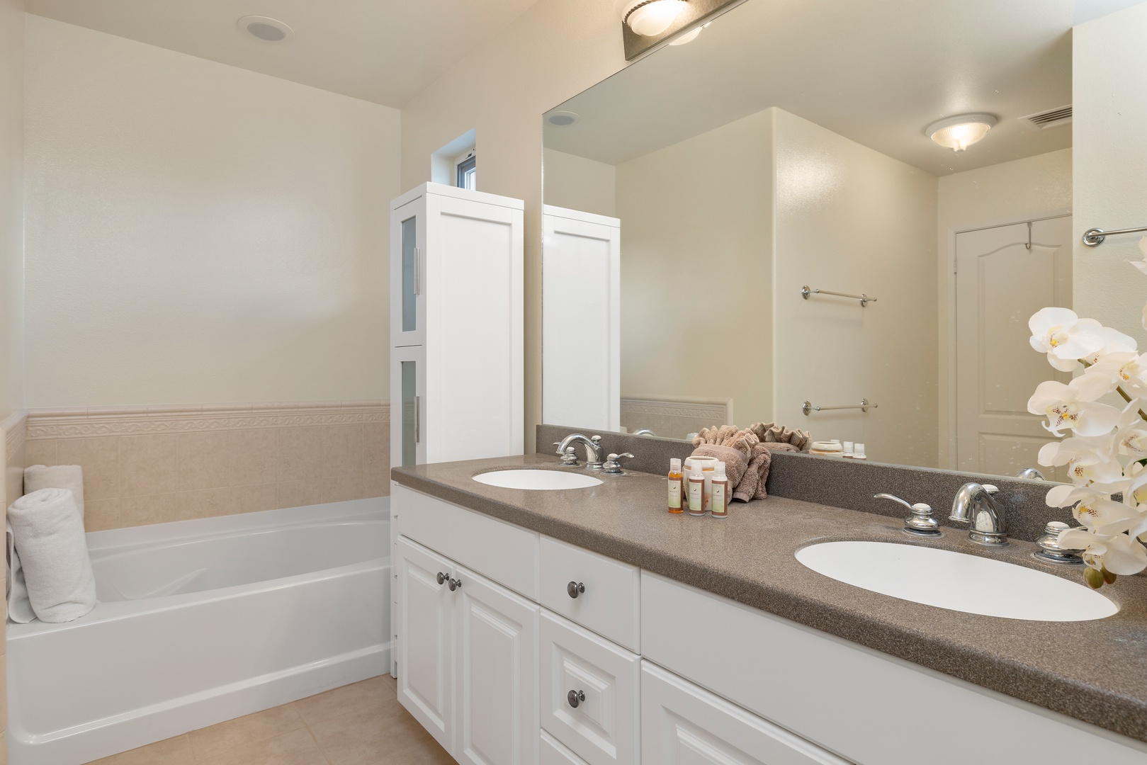 - Comfortable and Luxurious Bedrooms: Sleep in comfort with a master bedroom that includes a private lanai, a 55" TV, and an adjustable king-size bed. A full bedroom and bath on the first floor offer added privacy and convenience.