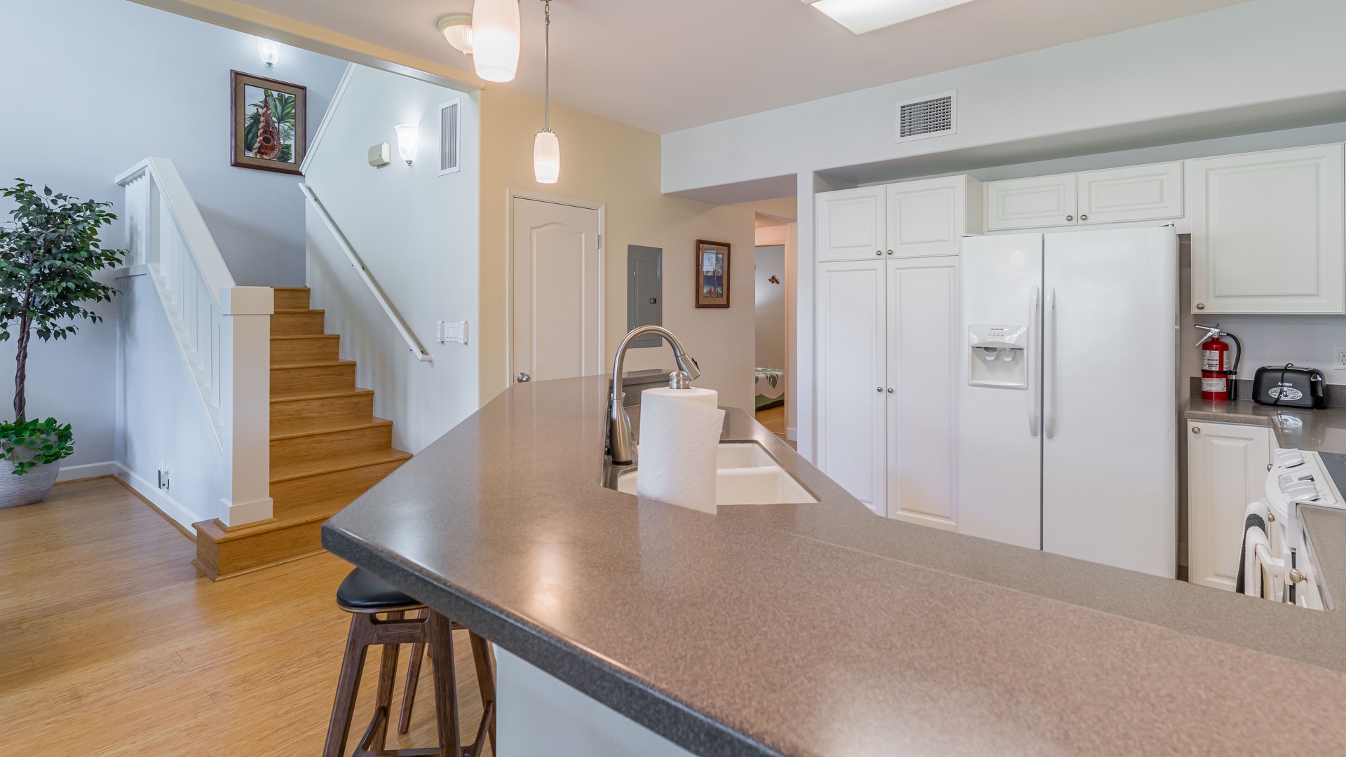 - Fully Equipped Kitchen: The bright and white kitchen is your culinary playground, featuring ample storage, expansive countertop space, and a breakfast bar—perfect for everything from morning coffee to gourmet meals. Plus, a wine fridge keeps your beverages perfectly chilled.